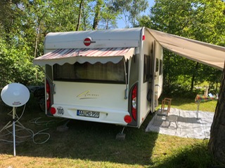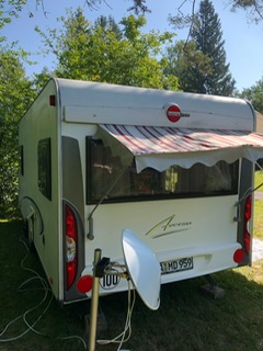 Als Besonderheit hat er einen Mover und eine Warmwassertherme. Die Vordächer mit Gestänge und der Boden sind incl.
